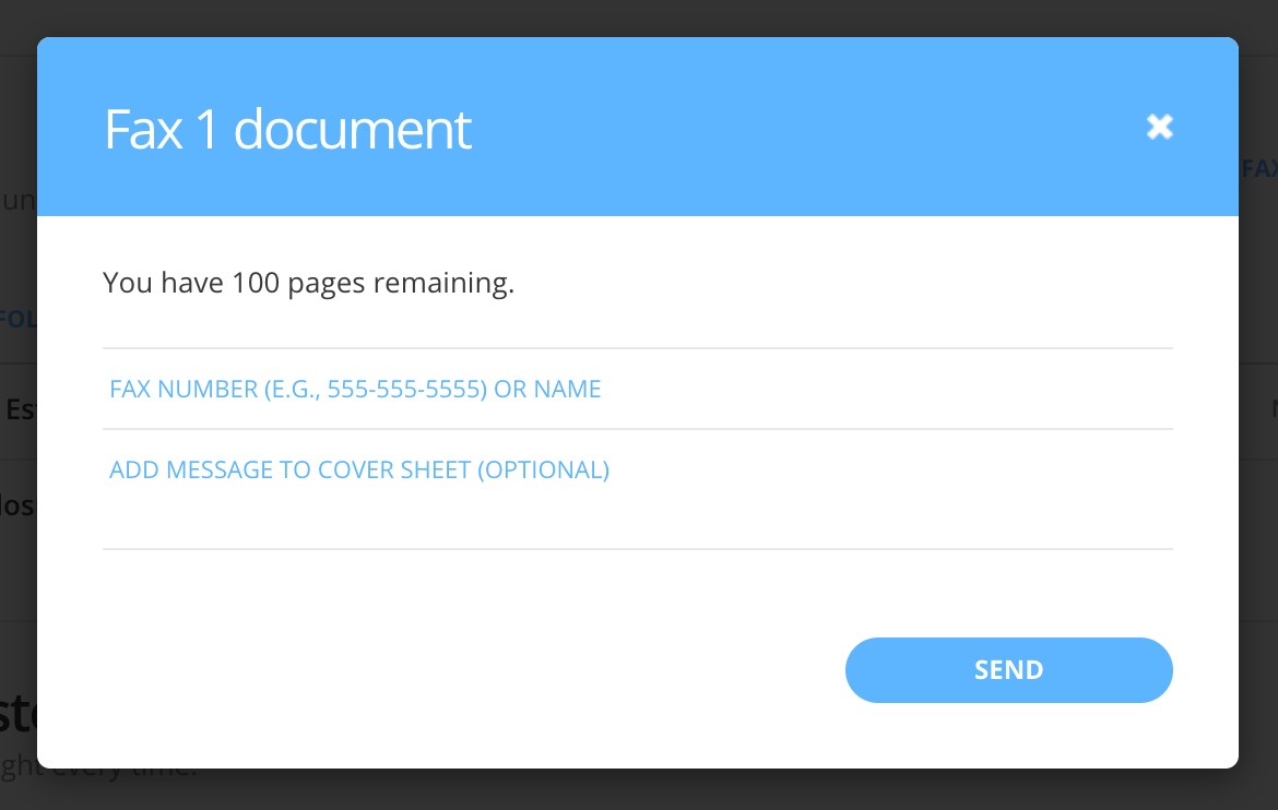 When you click on FAX, you will be prompted for a fax number (if you are not prompted for a fax number, please refer to tips below). Simply type in the recipient's fax number. You also have the option to write a short message which will be added to the fax's cover sheet.