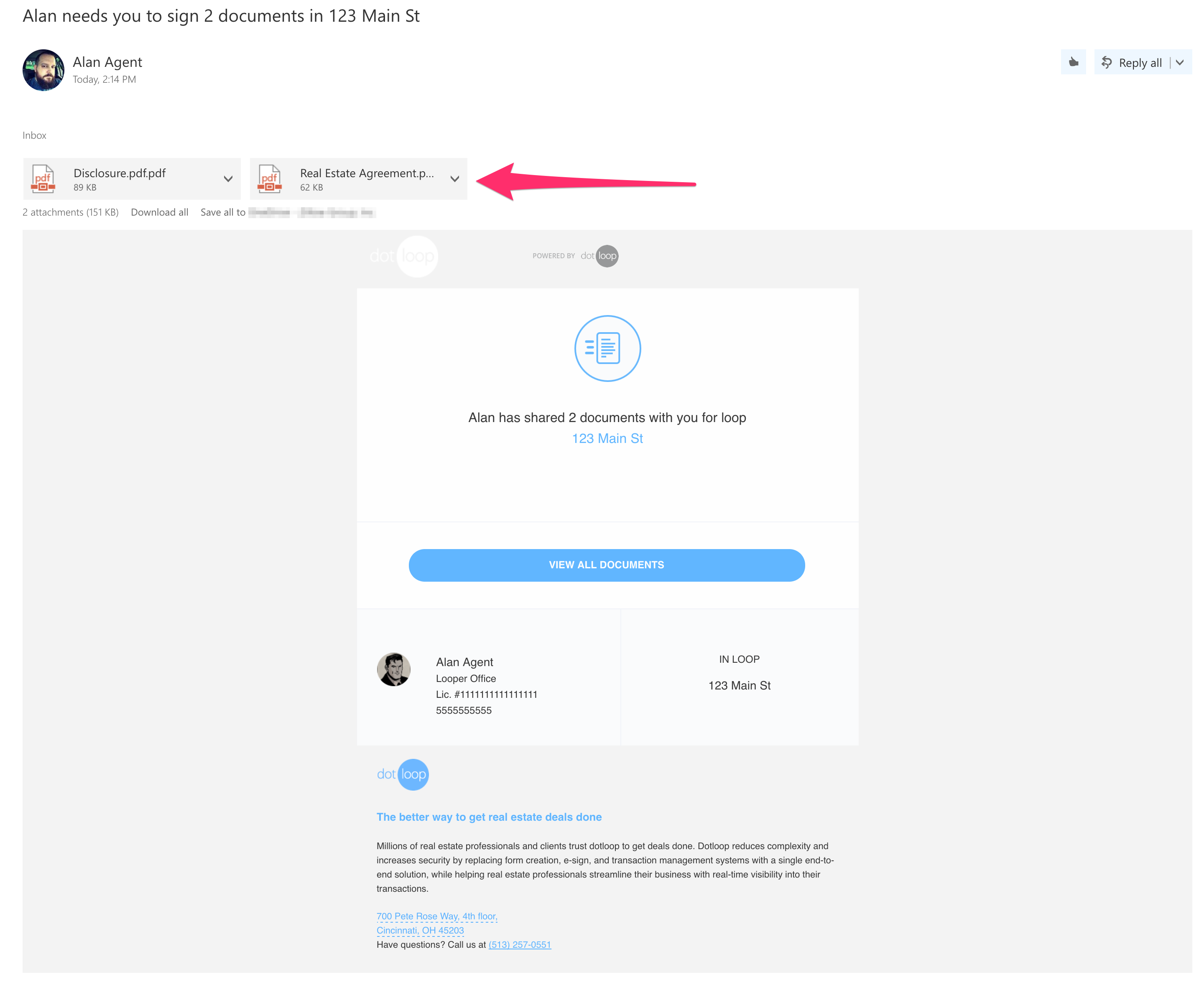 The recipient will now receive an email letting them know you have shared a document. Within the body of the email will be an attachment to download the PDF(s)!